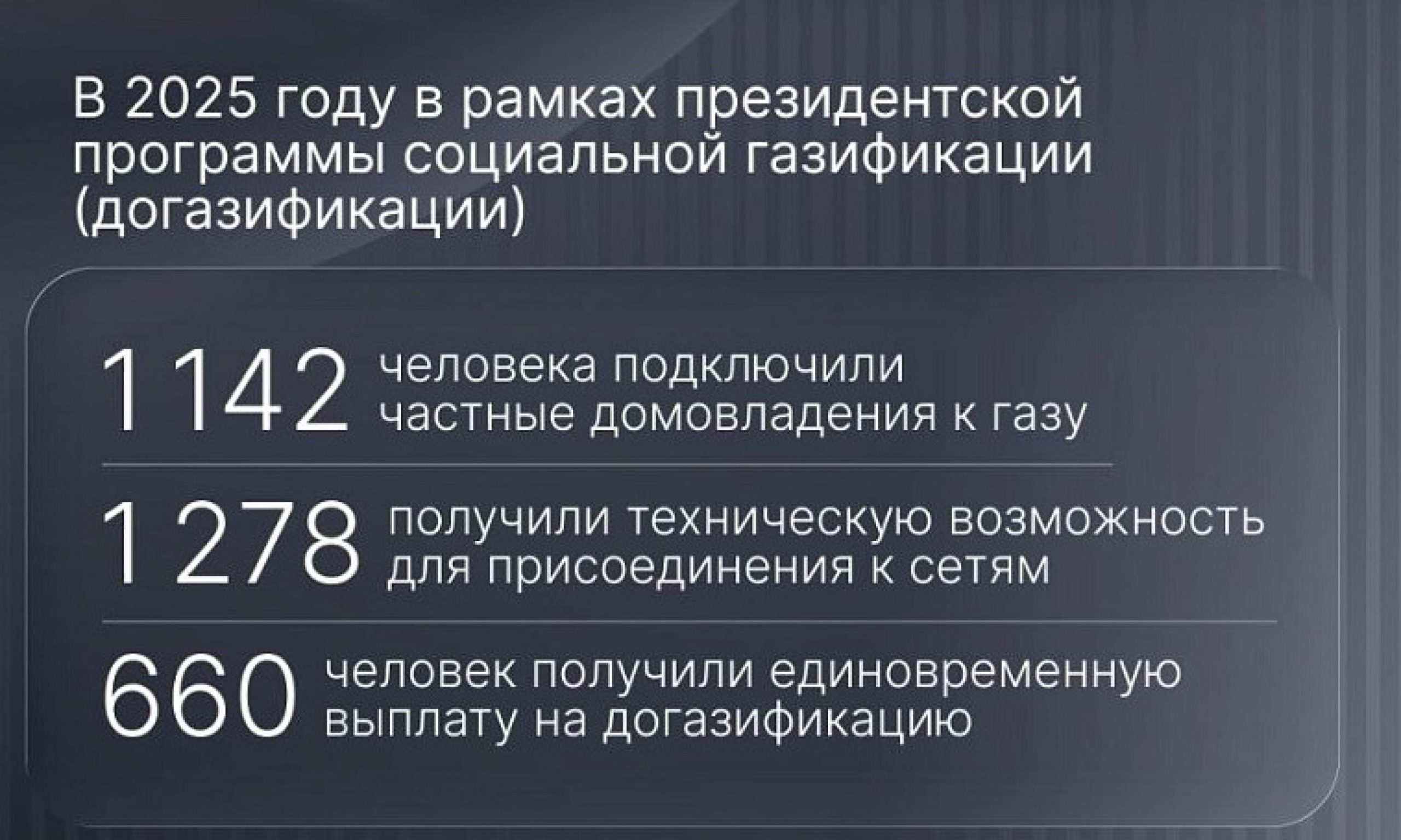 В 2025 году социальная газификация охватила свыше 1100 домовладений области. Как сообщает информационное агентство «Регион 29», в прошлом году 1142 человека начали использовать голубое топливо в быту. Работы по созданию технической возможности для присоединения к газовым сетям завершены для